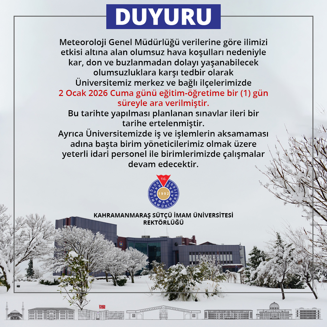 DUYURU: 2 Ocak 2026 Cuma günü eğitim-öğretime bir (1) gün süreyle ara verilmiştir.