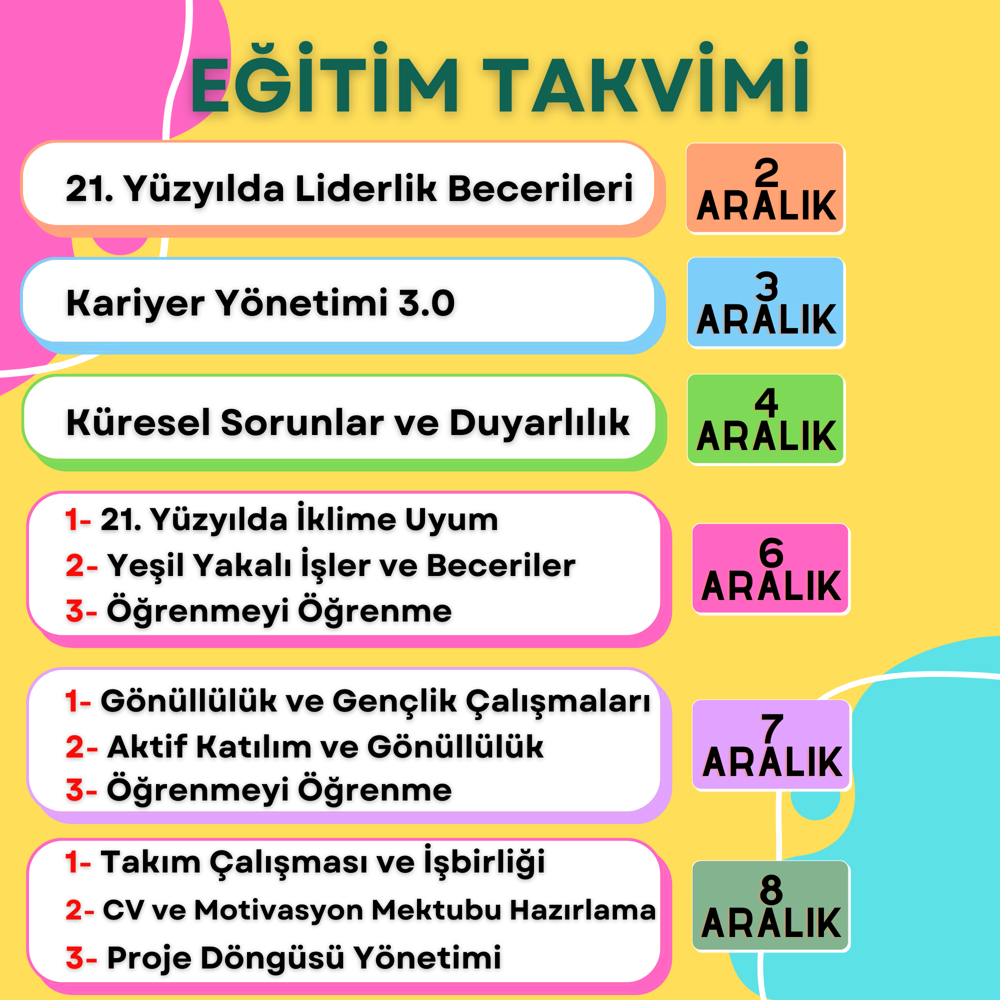 Eğitim ve proje takvimi detayları görsellerde!