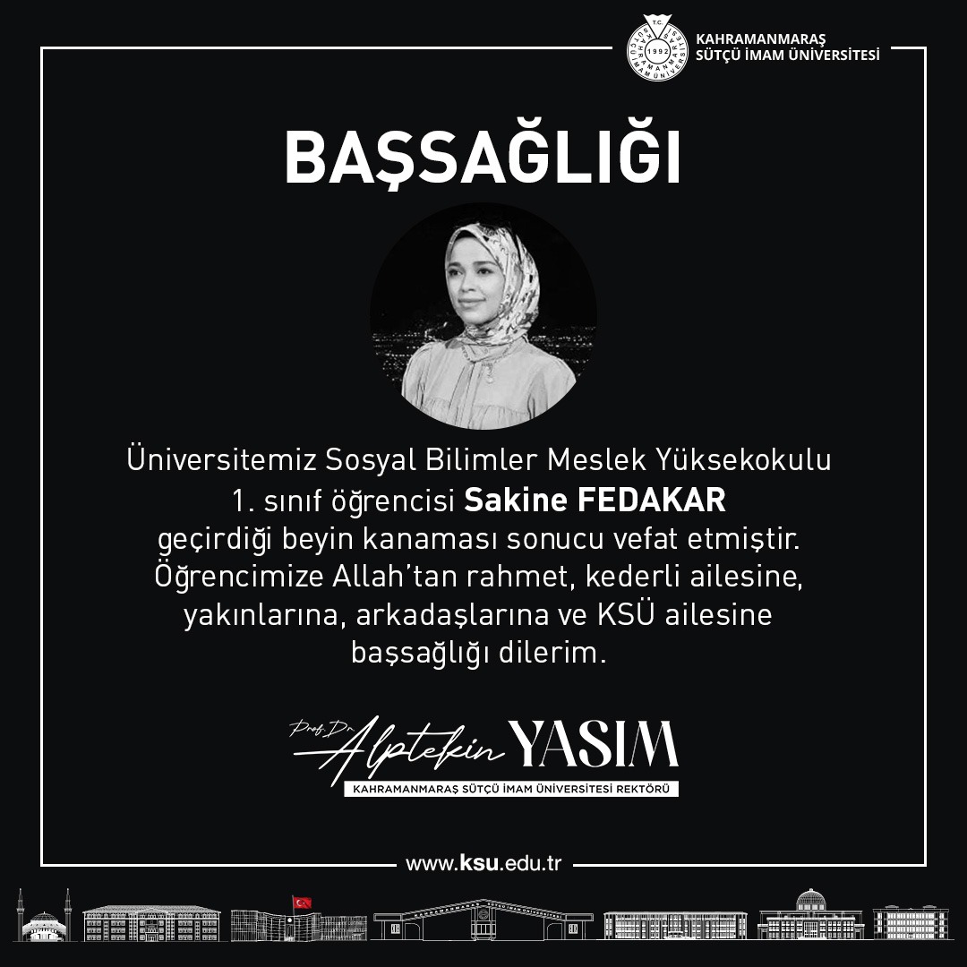Başsağlığı: Sosyal Bilimler Meslek Yüksekokulu 1. Sınıf Öğrencisi Sakine Fedakar Vefat Etmiştir